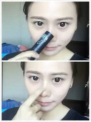 2.然后用高光棒在鼻梁位置畫一下,再用手指把畫上的高光部分涂抹暈染開,這樣會(huì)非常自然。高鼻梁立體五官就這樣輕松呈現(xiàn)拉~~