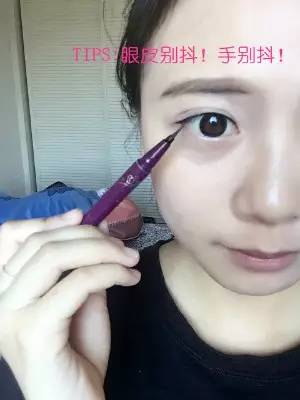 1.我建議剛學(xué)畫眼線的童鞋,使用液體眼線筆。畫眼線首先在眼頭、眼中、眼尾各畫上一筆,定好每個(gè)位置眼線的粗細(xì)。一般來(lái)說(shuō)都是眼頭細(xì),眼尾粗。
